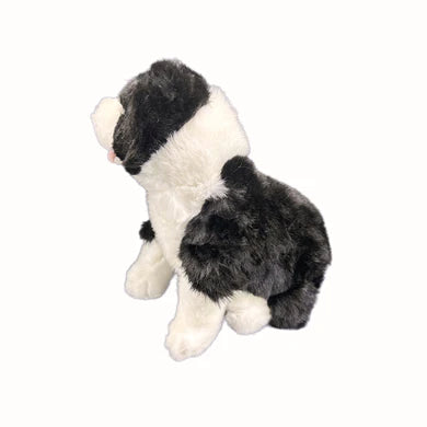 A plush Border Collie toy is a really cute and realistic-looking stuffed puppy. This is a quality-made sitting Australian Sheepdog plushie with brown and white coloring.