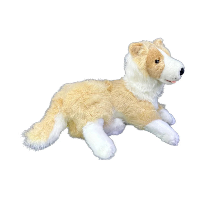 Biscuit is a really cute realistic stuffed puppy plush Border Collie dog in tan or yellow colouring. He is a quality-made sitting Australian Sheepdog plushie.