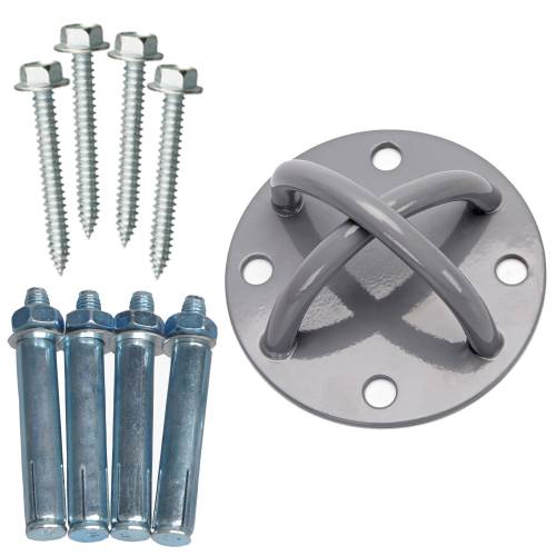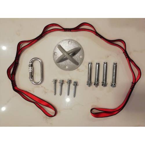 2x Anchor Plates, 8x Expansion Bolts, 8x Wood Screws, 2x Carabiners and 2x Adjustment Straps (110cm) |