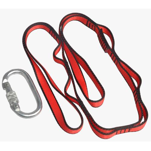 Now you have your anchor plates in place, so you can attach your strap by passing it through the metal ring, then passing it through itself. Now attach the carabiner at the desired height and attach the swing of your choice.