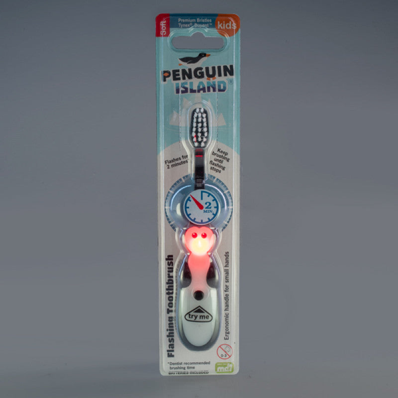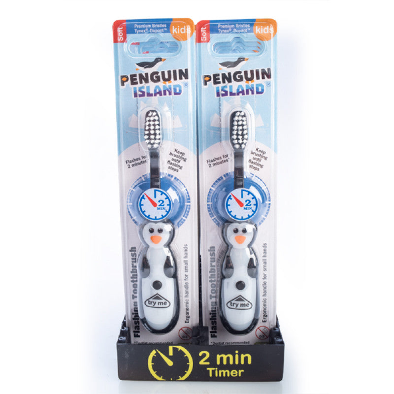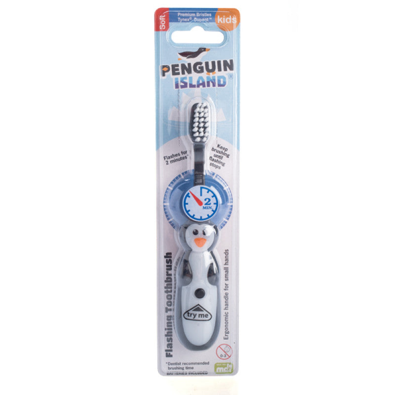 • Cute penguin shaped toothbrush with flashing light – light flashes for the recommended brushing time of 2 minutes