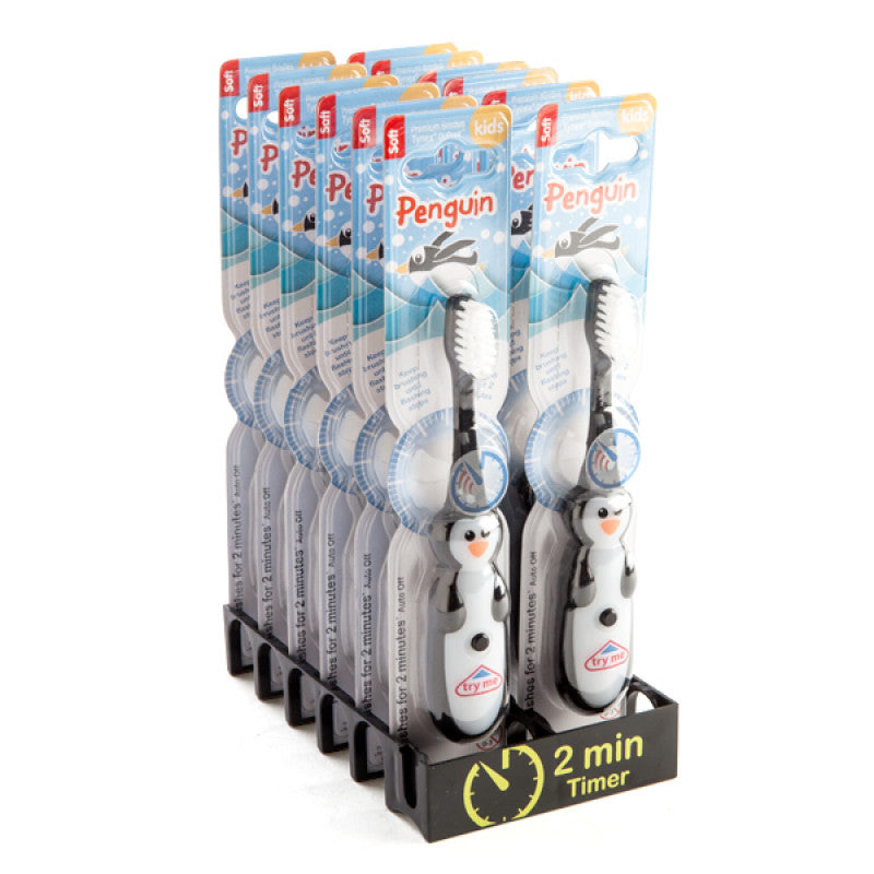 Product Description: Cute penguin shaped toothbrush with flashing light – light flashes for the recommended brushing time of 2 minutes Easy-grip ergonomic handle means it's... Read More