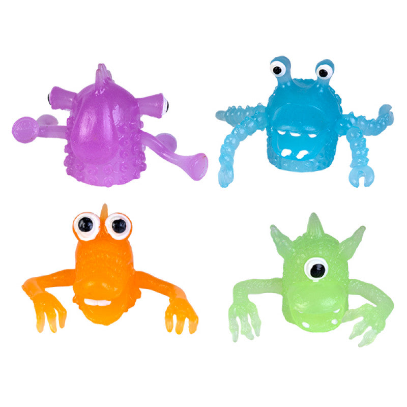 Introducing the Glow in the Dark Monsterlings Finger Puppets—designed to enhance storytelling and imaginative play while offering sensory benefits. These finger-sized puppets are made from soft, flexible rubber material, providing tactile input and supporting fine motor development as they are slipped onto the fingers and manipulated for creative play.