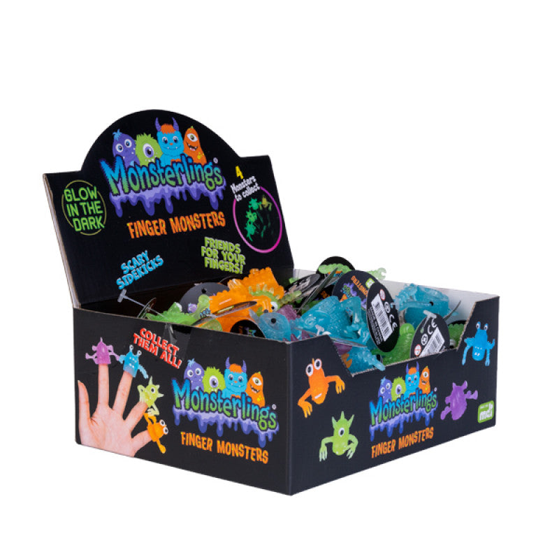 Each set includes four distinct Monsterlings, each with its own glow-in-the-dark color and design: