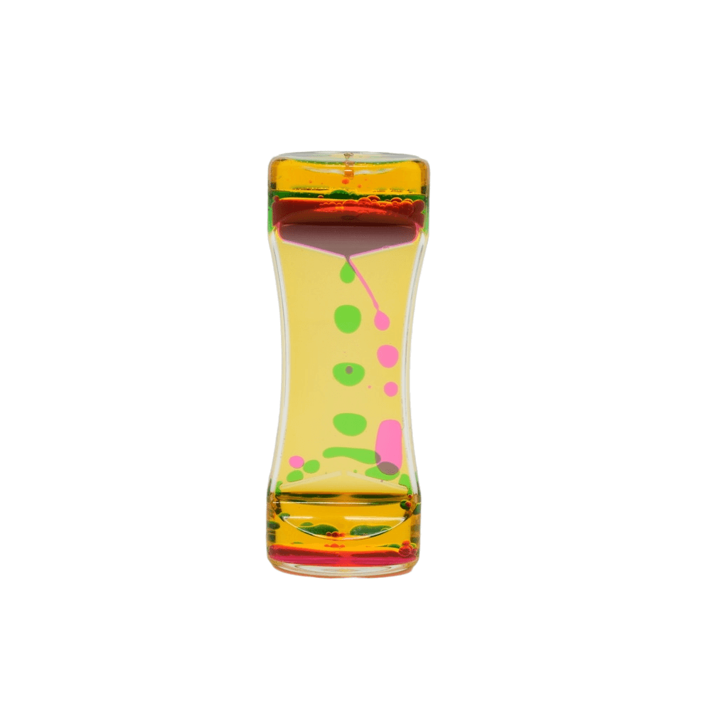 This liquid timer can be used for a general timing activity (such as tooth brushing) or as a calming and soothing tool for anxiety management. Colourful liquid timer drips oil droplets down to the bottom. When it is finished, simply upend it and start again.