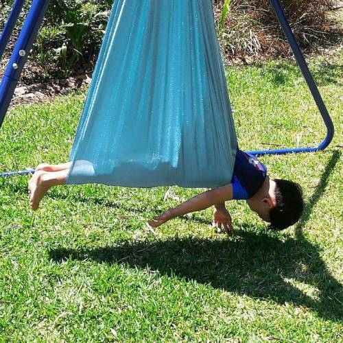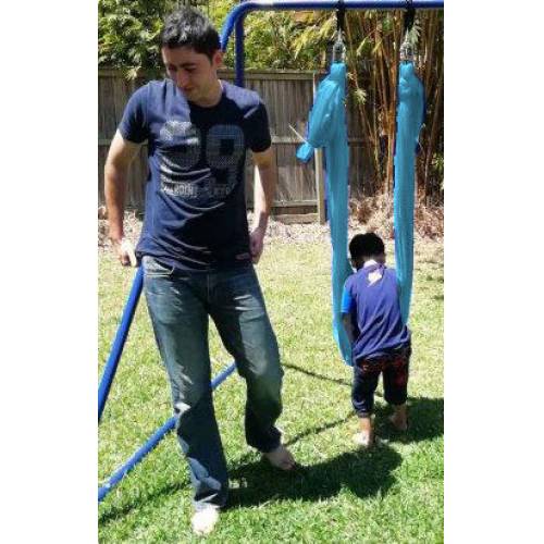 The Medium Wrap Therapy Swing is an ideal option for younger children, especially those under 140cm tall. With a width of 180cm (compared to the larger 250cm version), this swing provides a snugger fit, offering less material overlap around the head and feet, making it more suitable for smaller users. It is designed to help with sensory integration by providing both vestibular and proprioceptive input, supporting calming effects and sensory regulation.